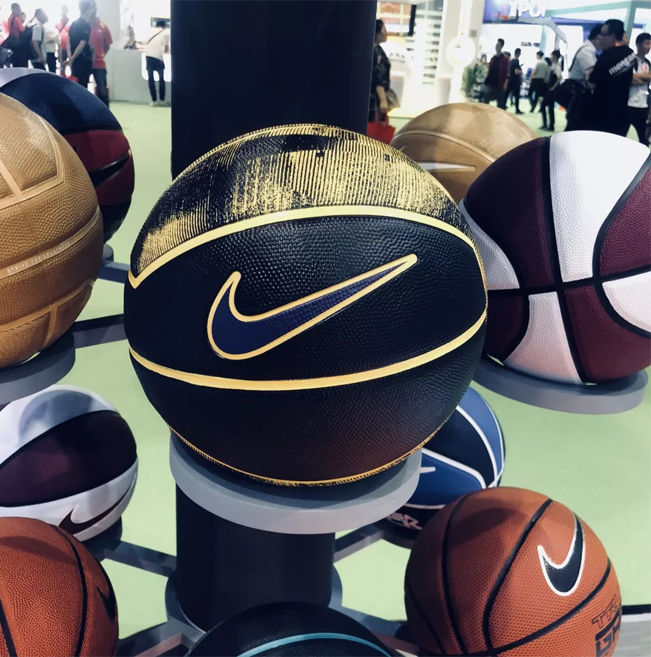 2019中国国际体育用品博览会今起(5月23日)一连四天在上海国际会展中心登场,在Hall 4.1馆当中,可以很快的找到Nike Basketball的摊位,现场展出了四种类别,分别是:经典款篮球延续新配色、Lebronjames Signature詹皇系列、Jordan 、Kelvin Durant Signature杜兰特系列。